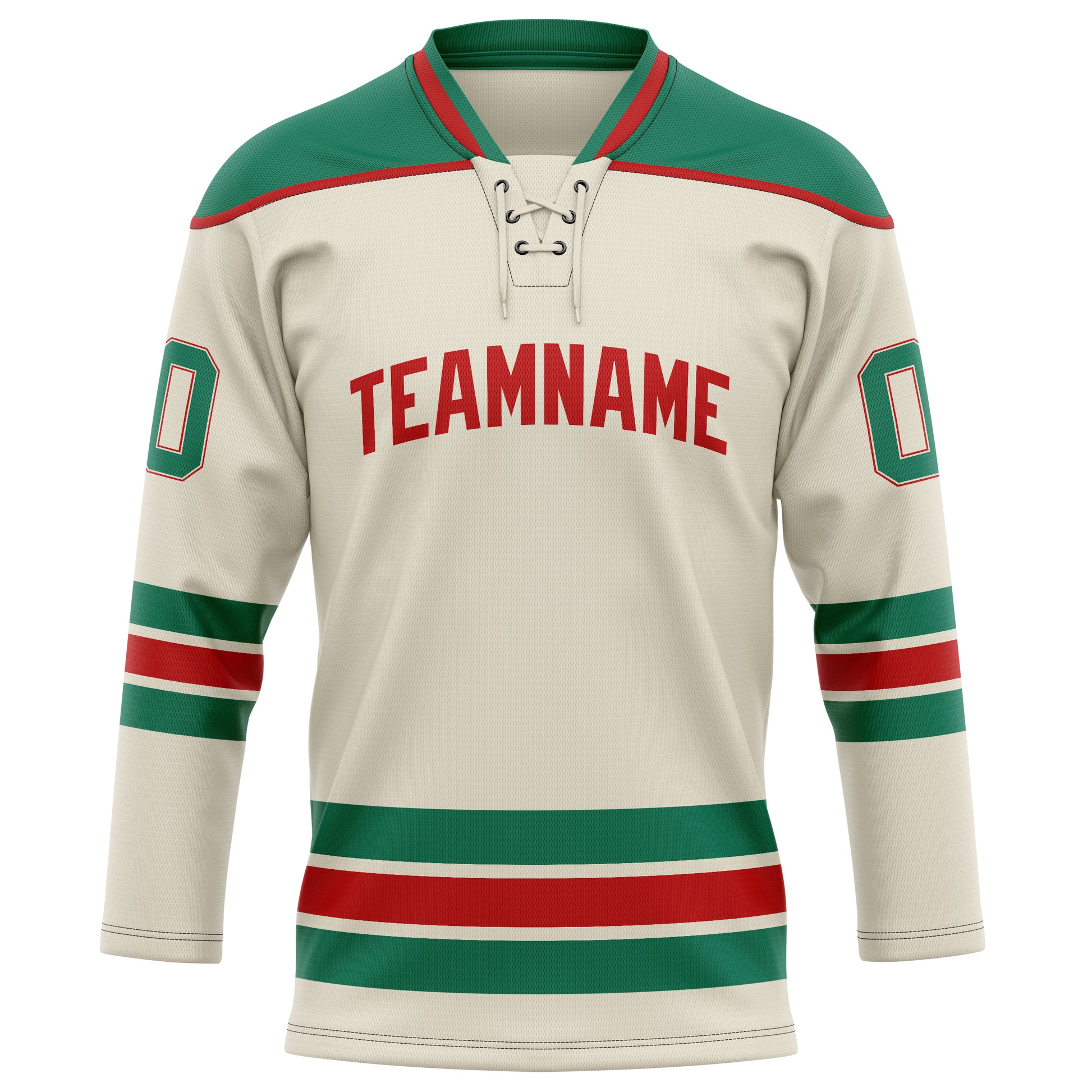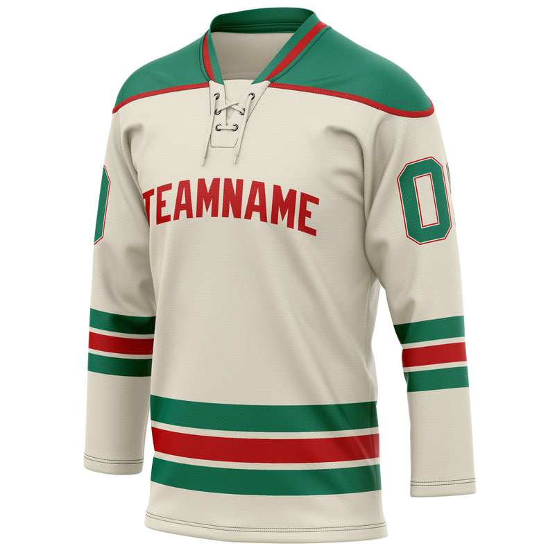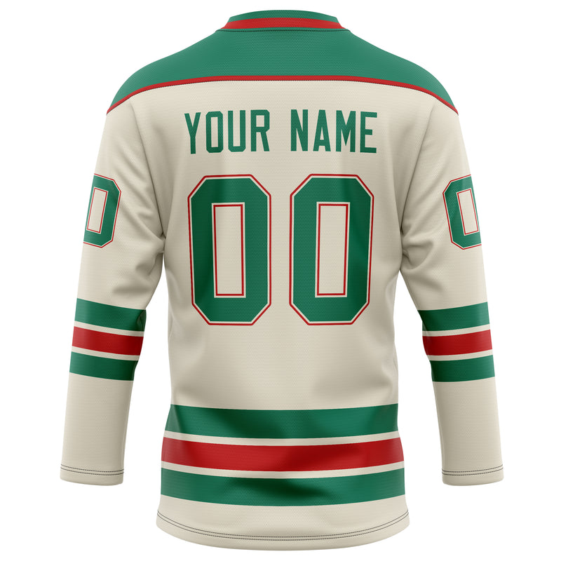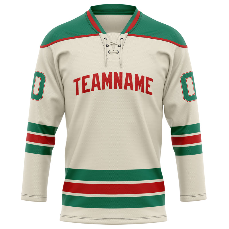 Custom Cream Kelly Green Solid Colour Hockey Jersey