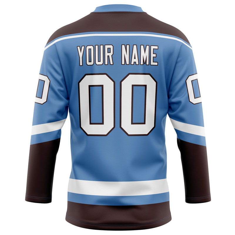 Custom Light Blue Brown Solid Colour Hockey Jersey