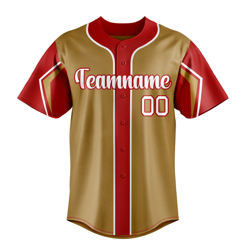 Custom Old Gold & Red 3 Colors Arm Shapes Fan Baseball Jersey BB01240531WX523