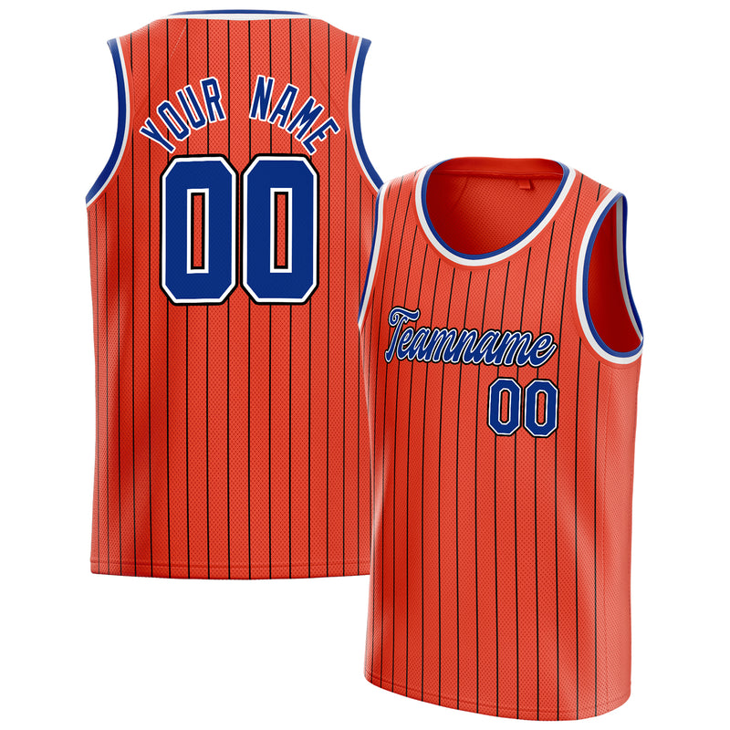 Custom Orange Royal Black-Pinstripe Basketball Jersey