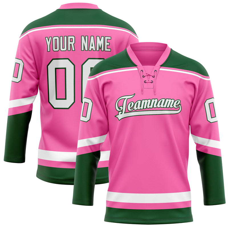 Custom Pink Kelly Green Solid Colour Hockey Jersey