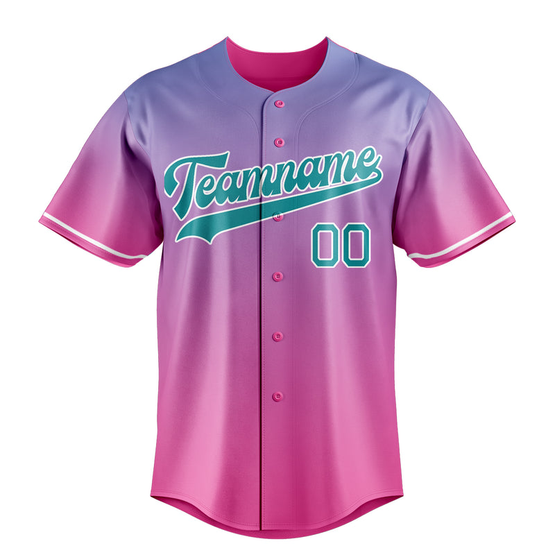 Custom Pink & Teal Pink Blue Gradient Fan Baseball Jersey BB01240529WX410