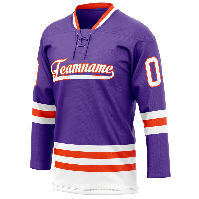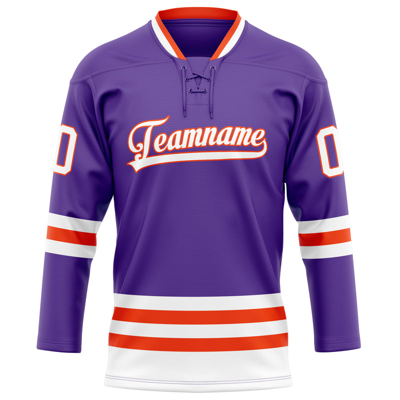 Custom Purple Orange Solid Colour Hockey Jersey