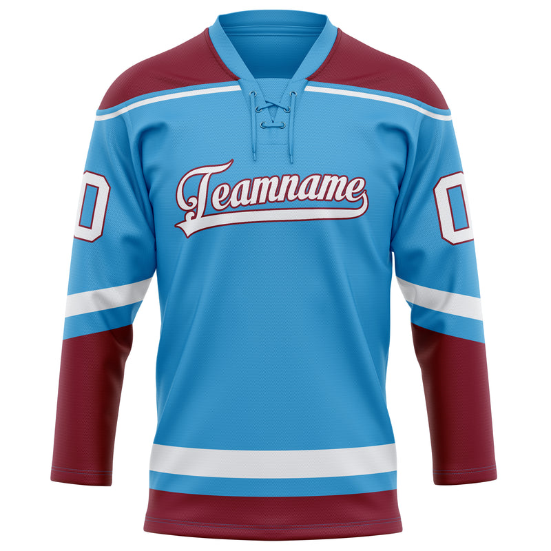 Custom Sky Blue Maroon Solid Colour Hockey Jersey