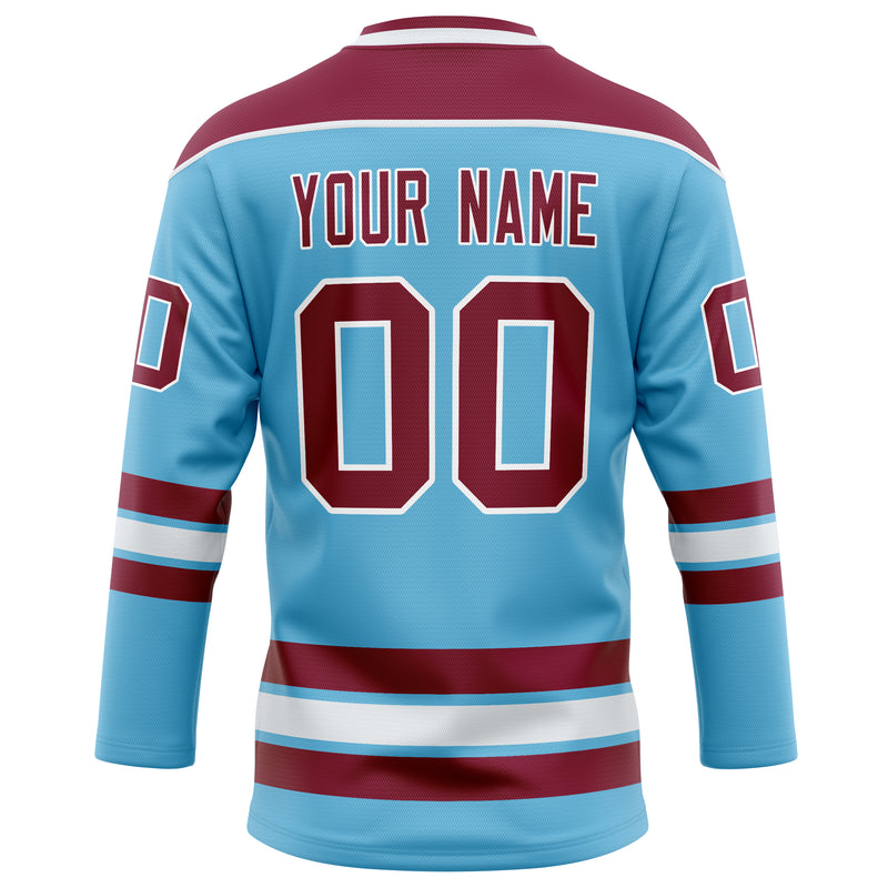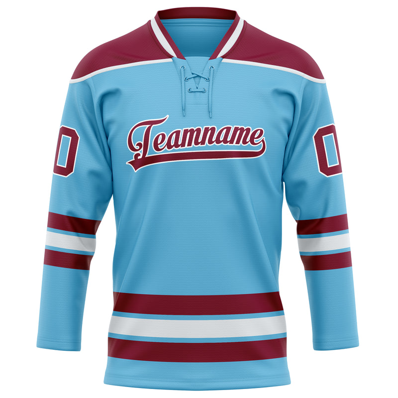 Custom Sky Blue Maroon Solid Colour Hockey Jersey