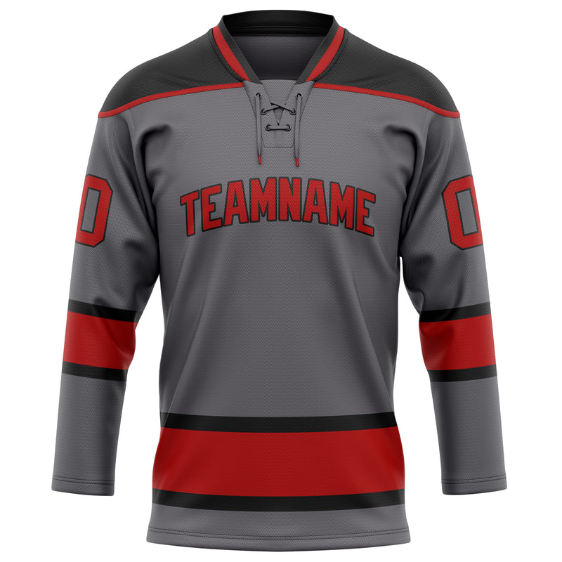 Custom Steel Gray Red Solid Colour Hockey Jersey