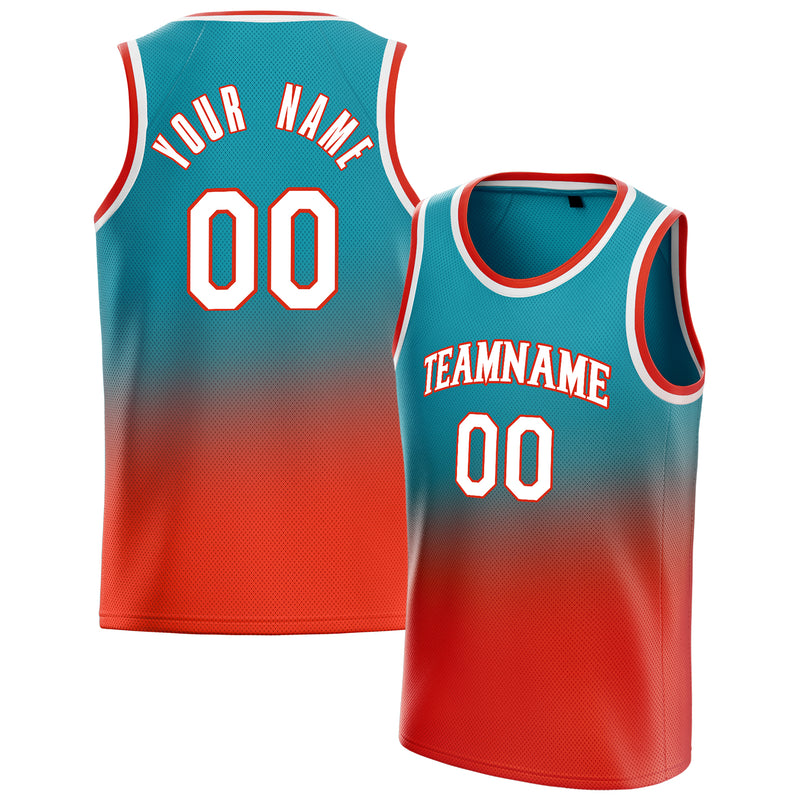 Custom Teal Orange Fade Basketball Jersey