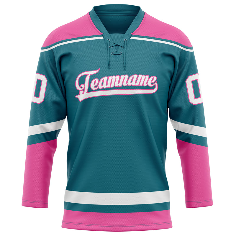 Custom Teal Pink Solid Colour Hockey Jersey